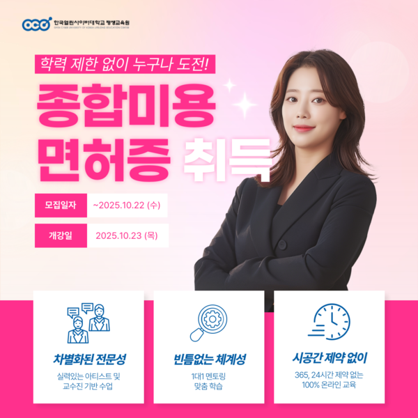 한국열린사이버대학교 평생교육원, 10월 22일까지 종합미용면허증 과정 수강생 모집